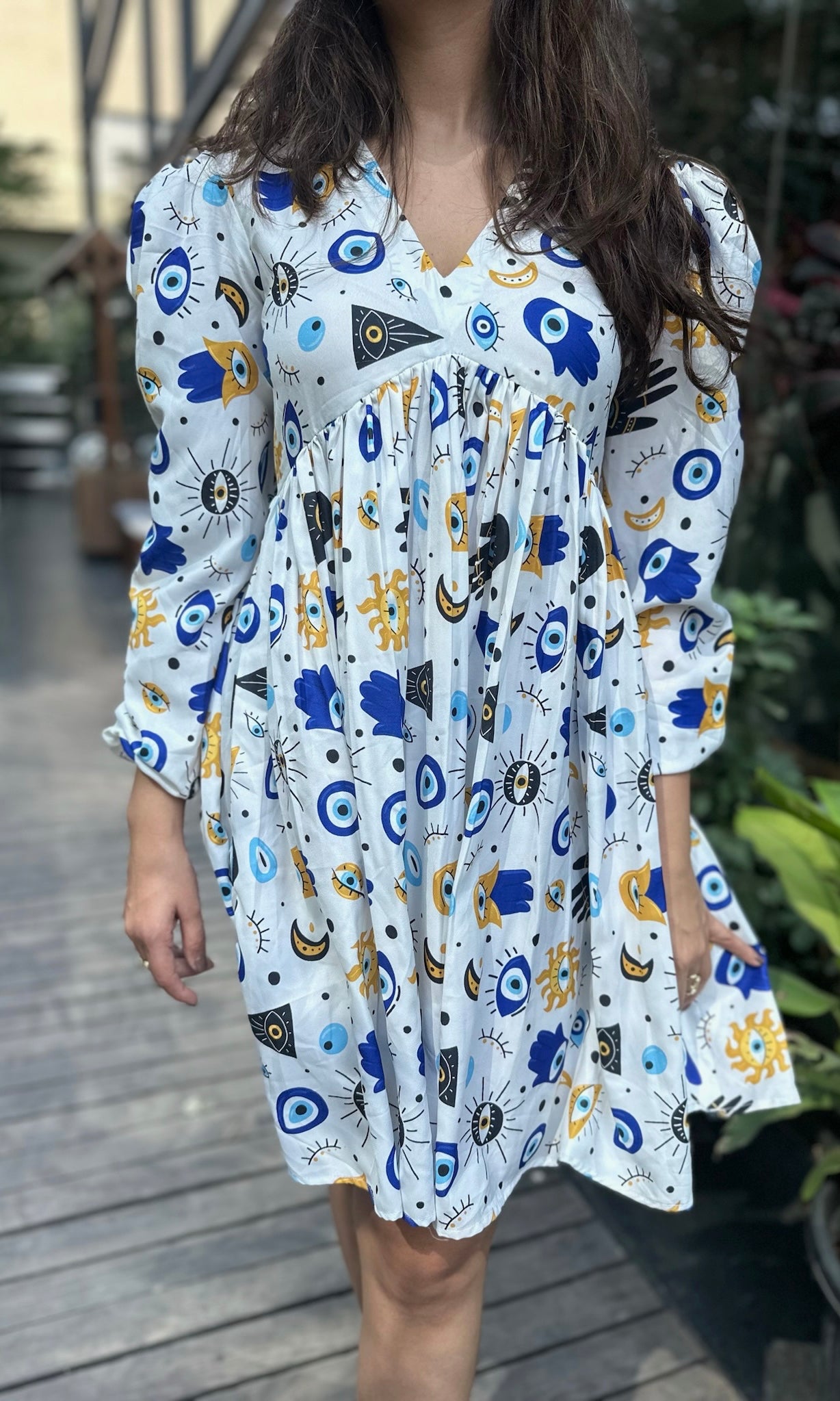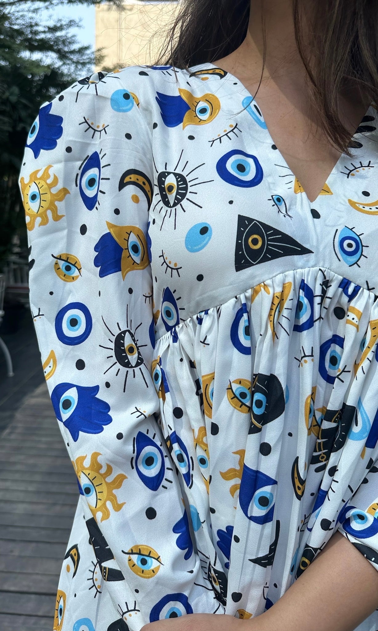 -Pattern detail: V neckline with puff sleeves and empire yoke