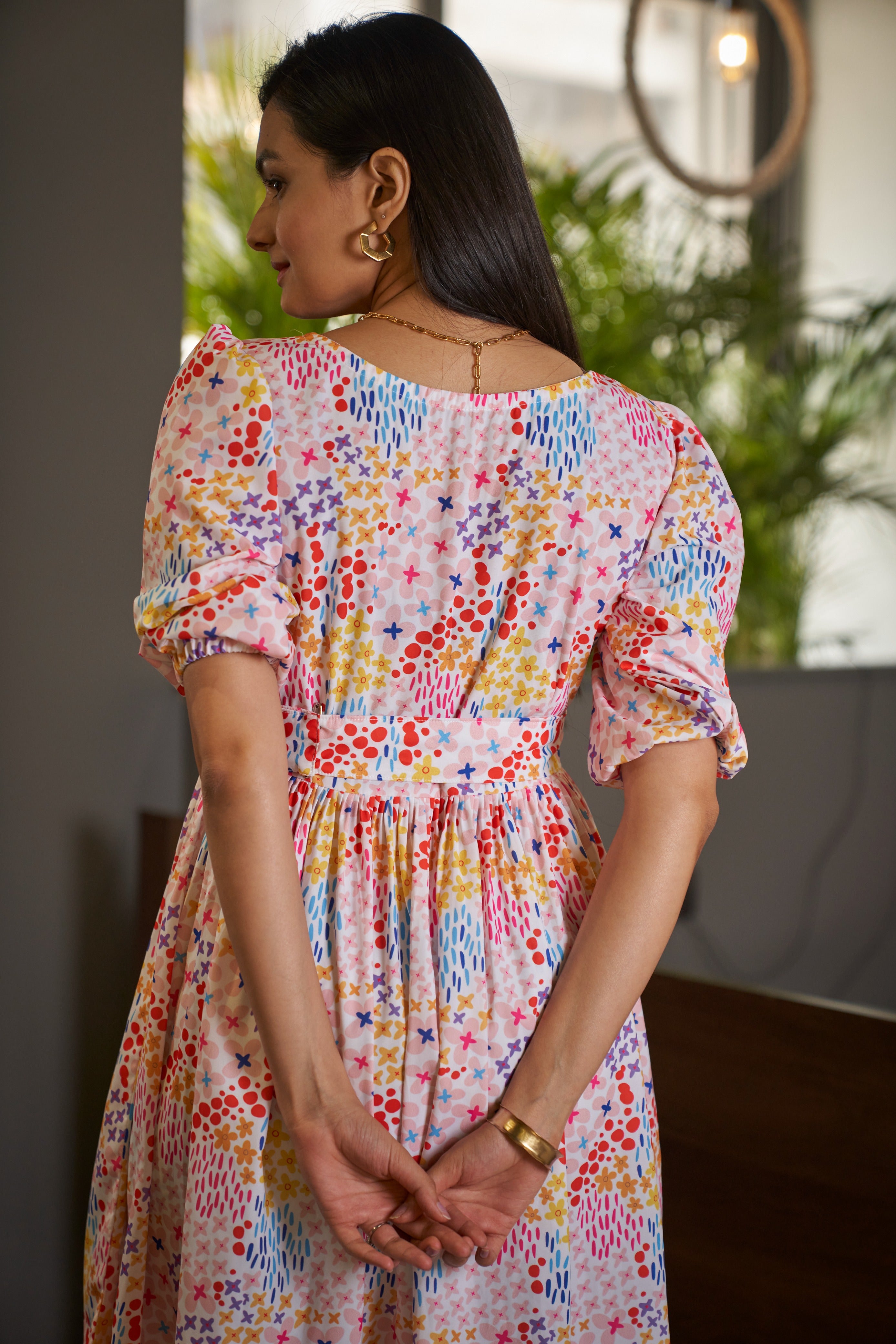 What better than a pocket belt! This dress is blend of breeze and ease. The simple silhouette with detachable functional belt do all the justice to girls out there.