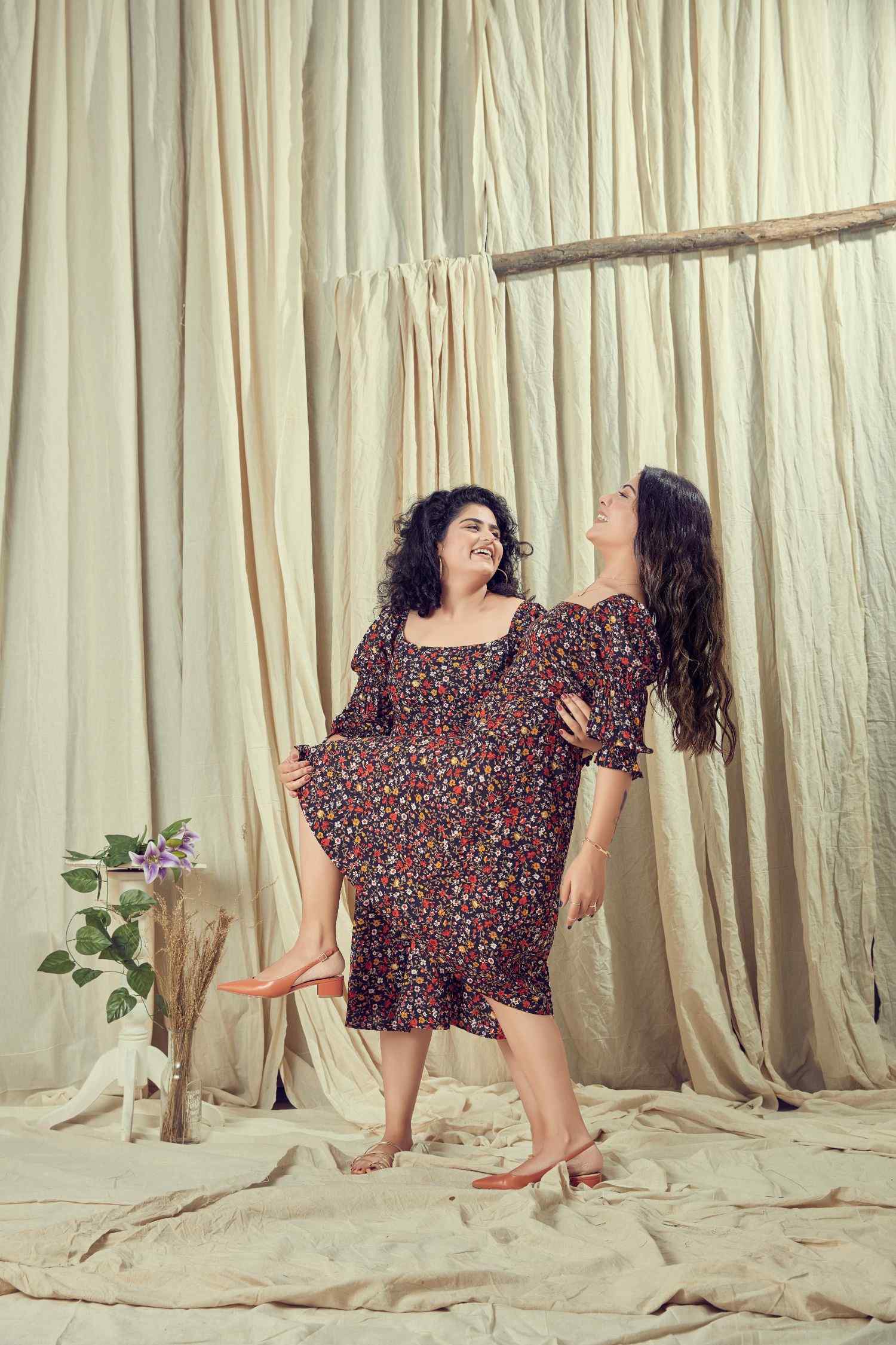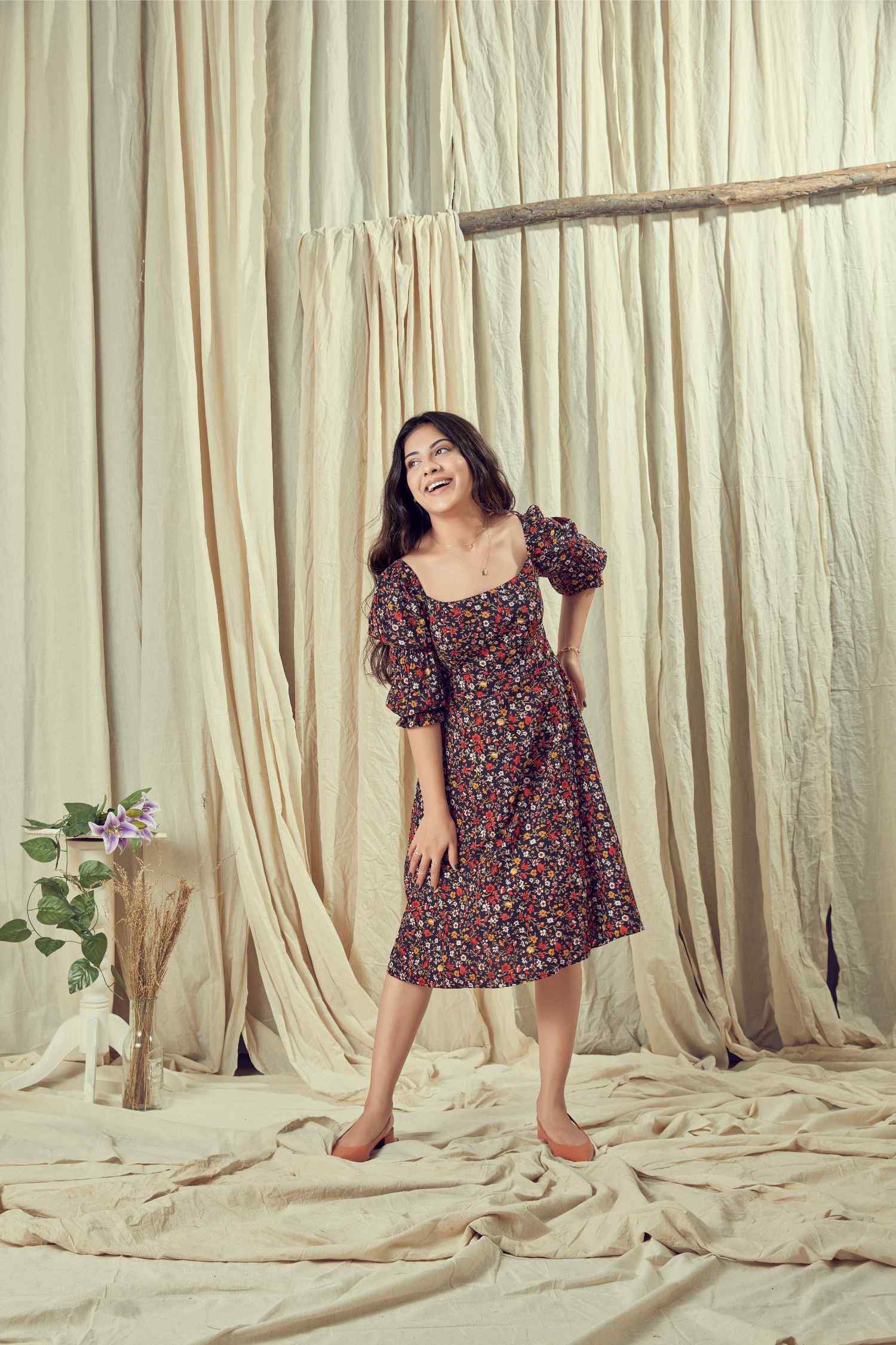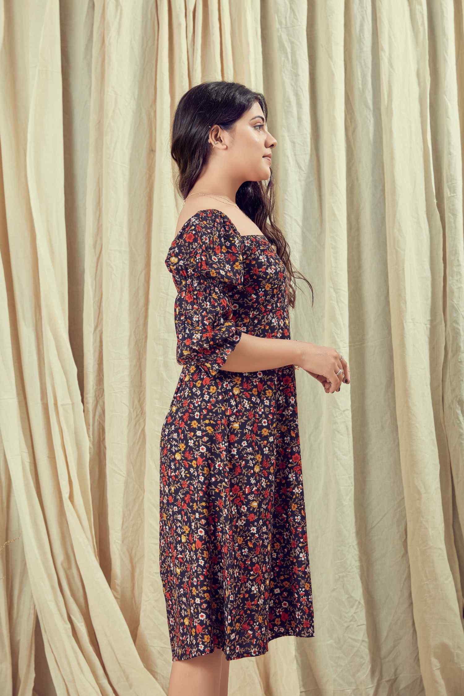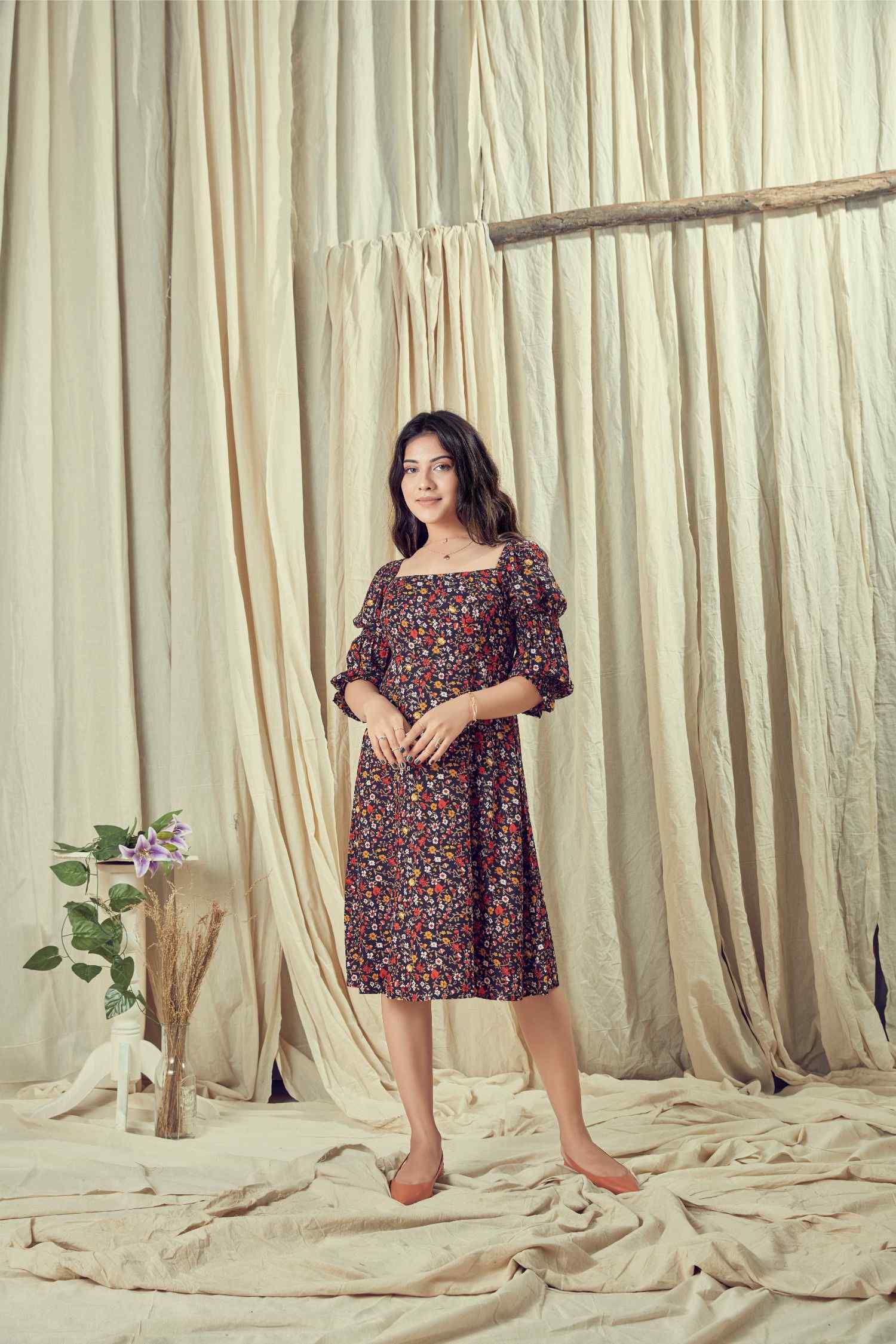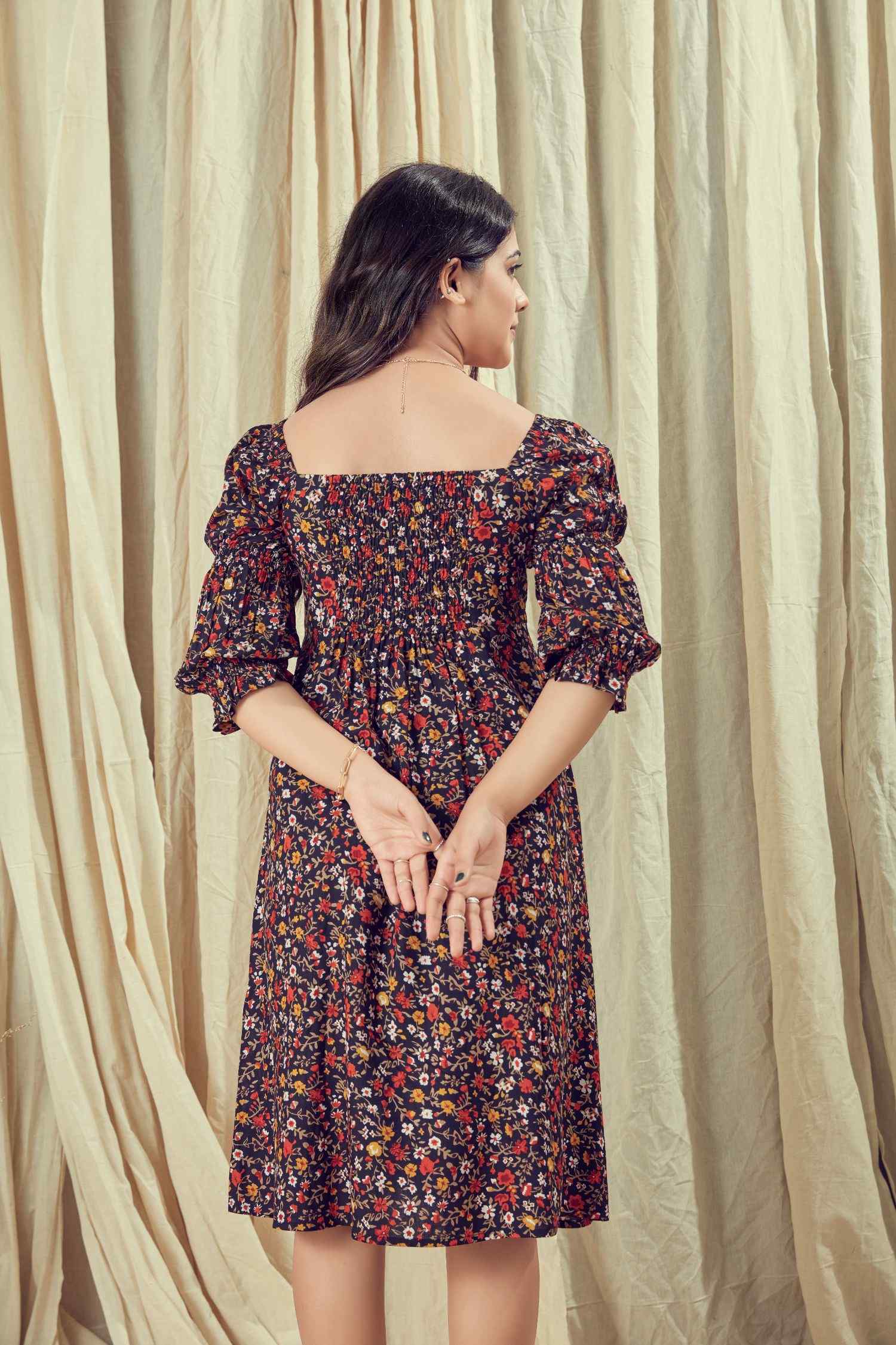 Comfort comes first with this rayon dress. It features smocking back and elasticated sleeves so it sits perfectly on or off our shoulder.