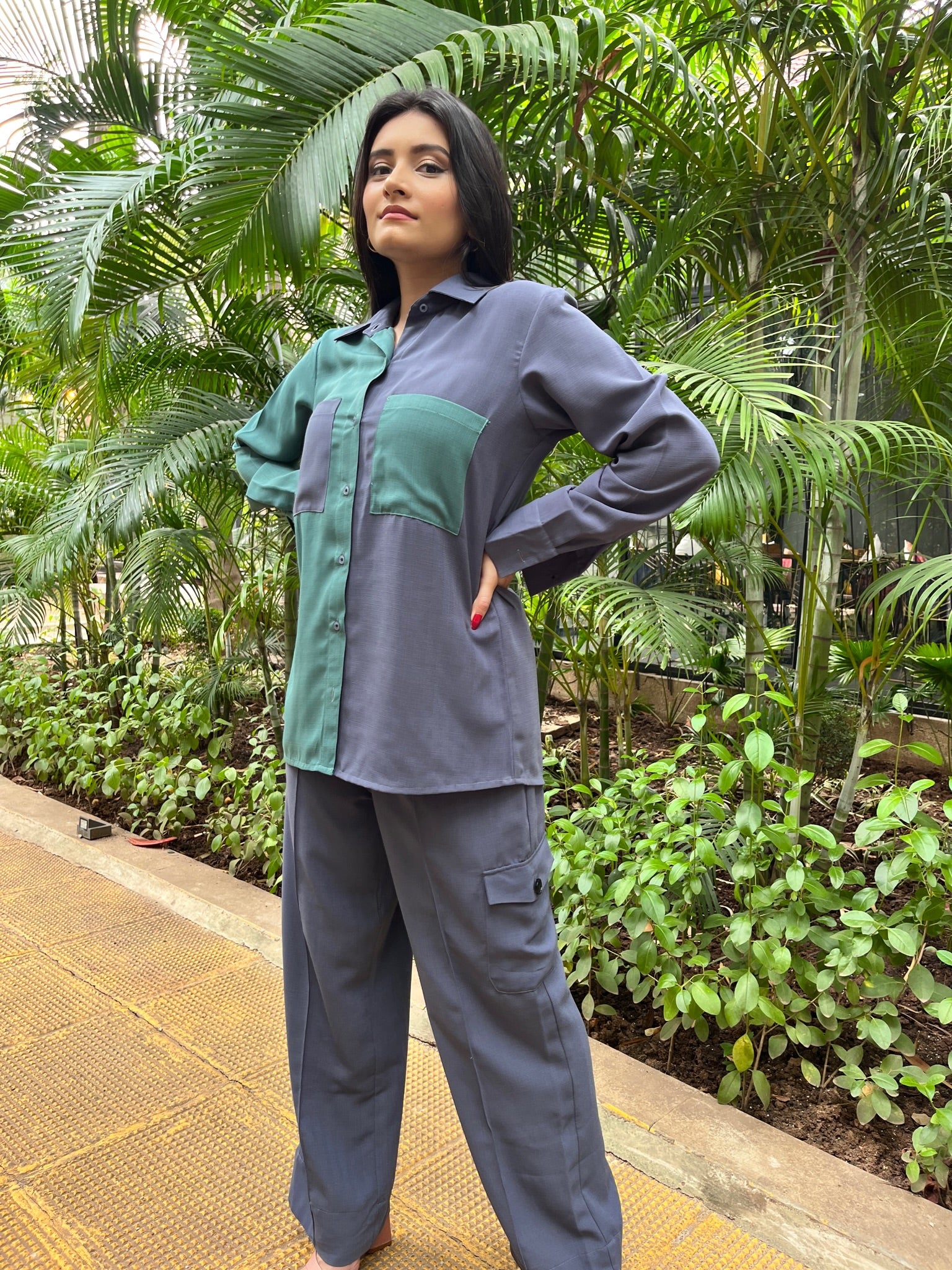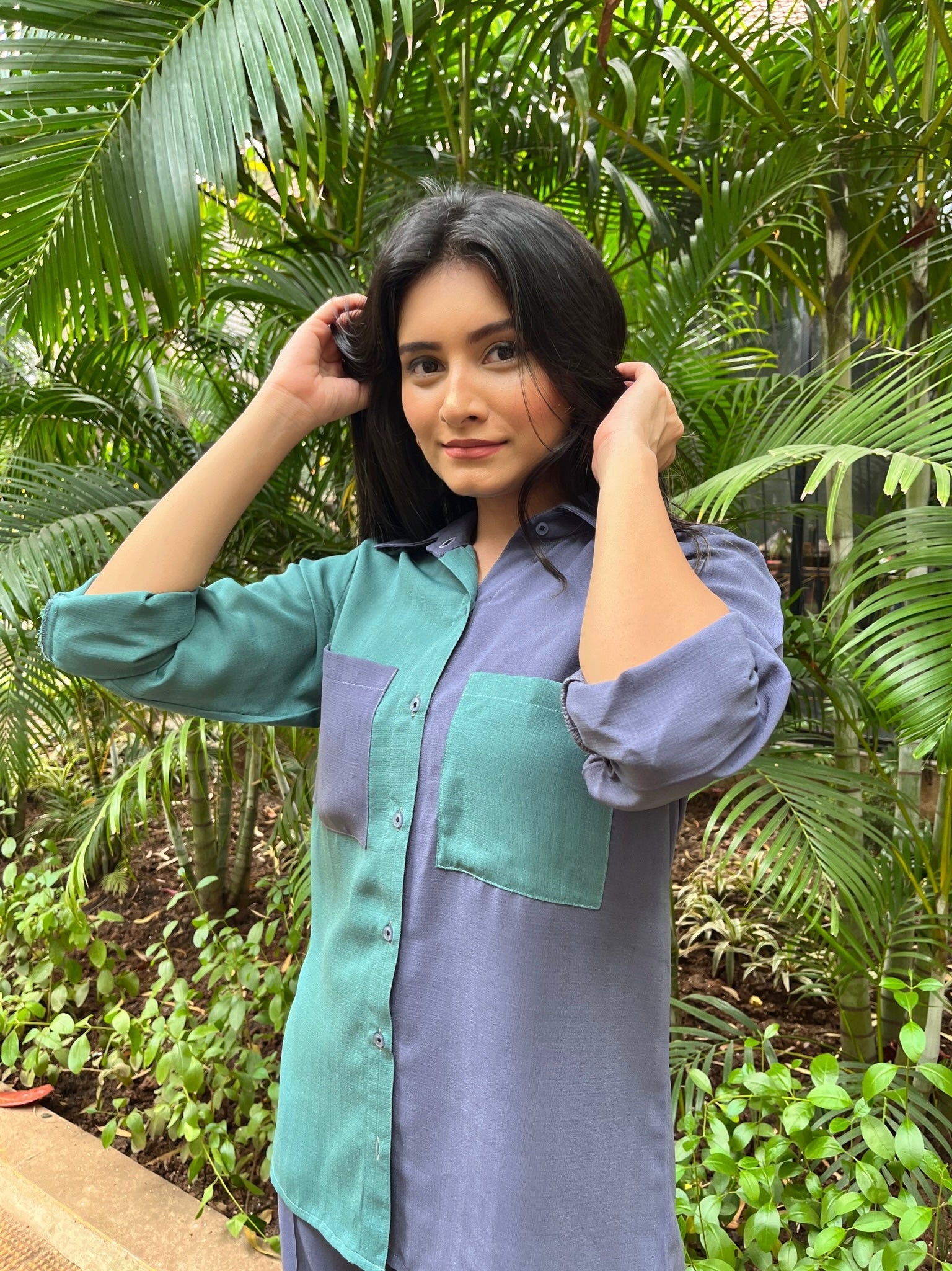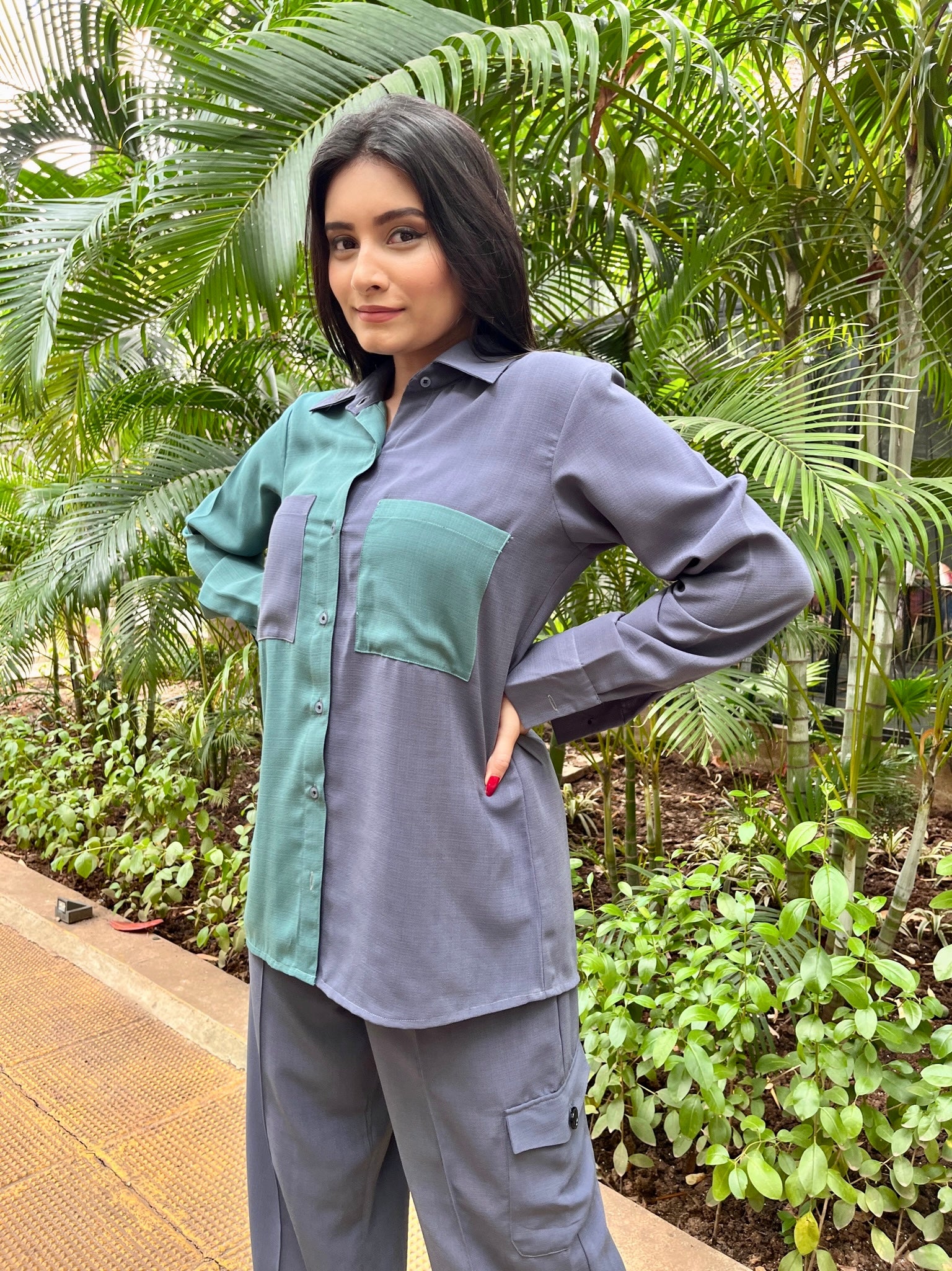 A break to your regular oversized shirt. Presenting our half and half shirt with contrast pockets.