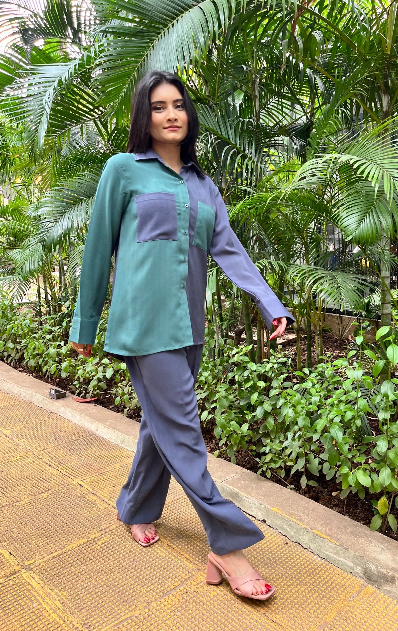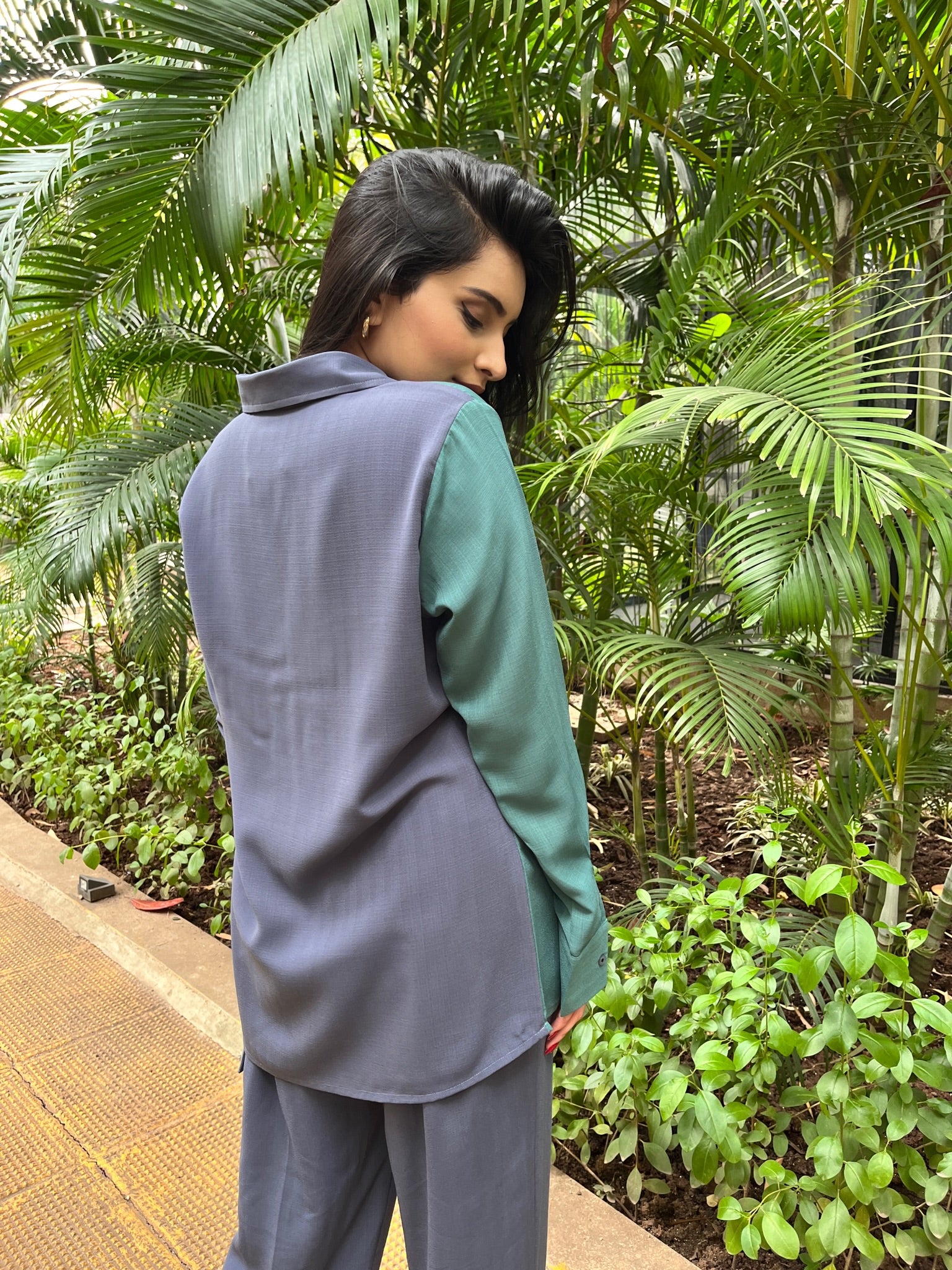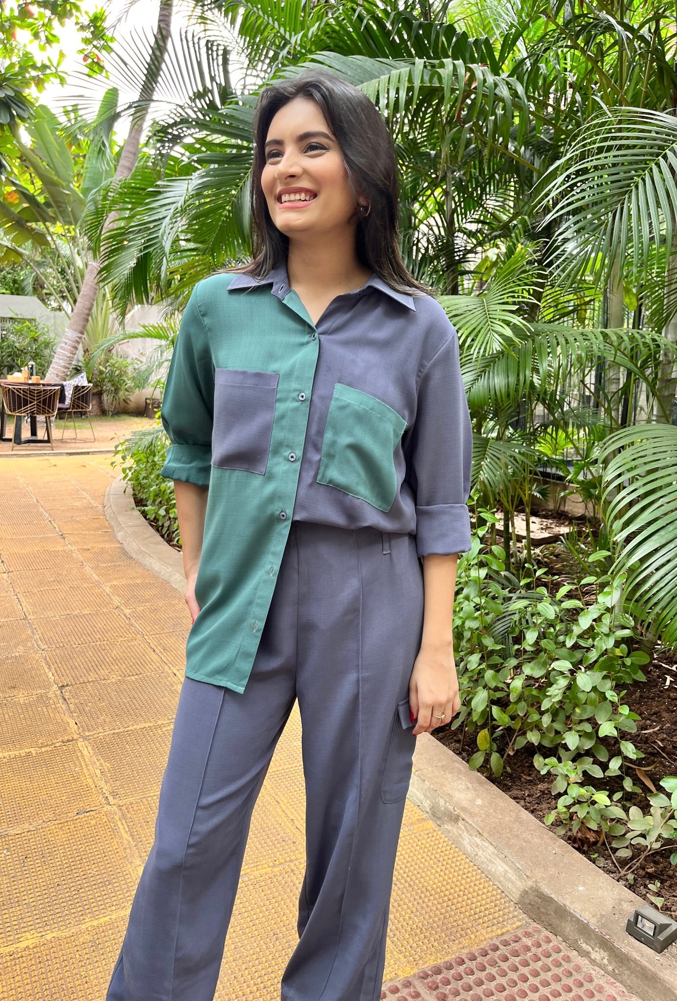 A break to your regular oversized shirt. Presenting our half and half shirt with contrast pockets.