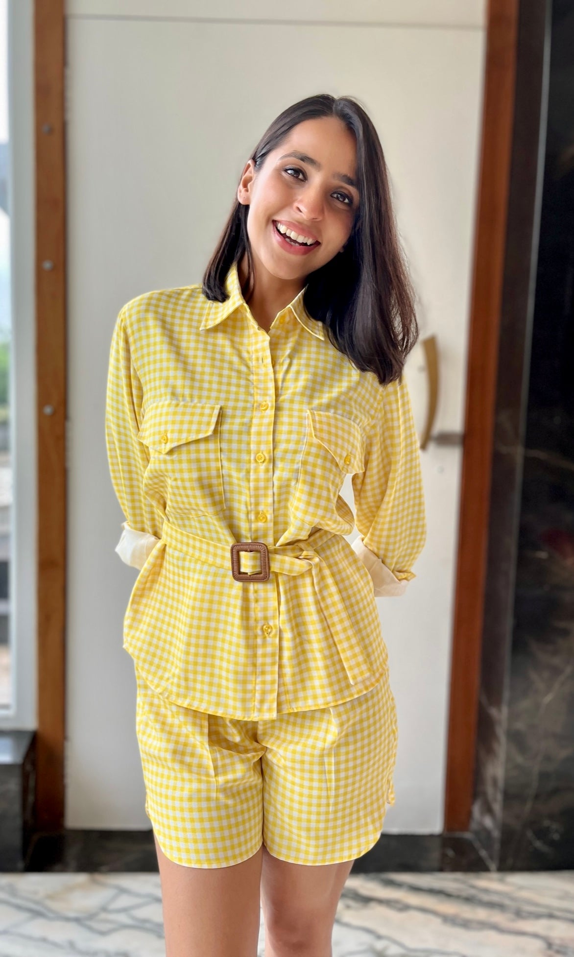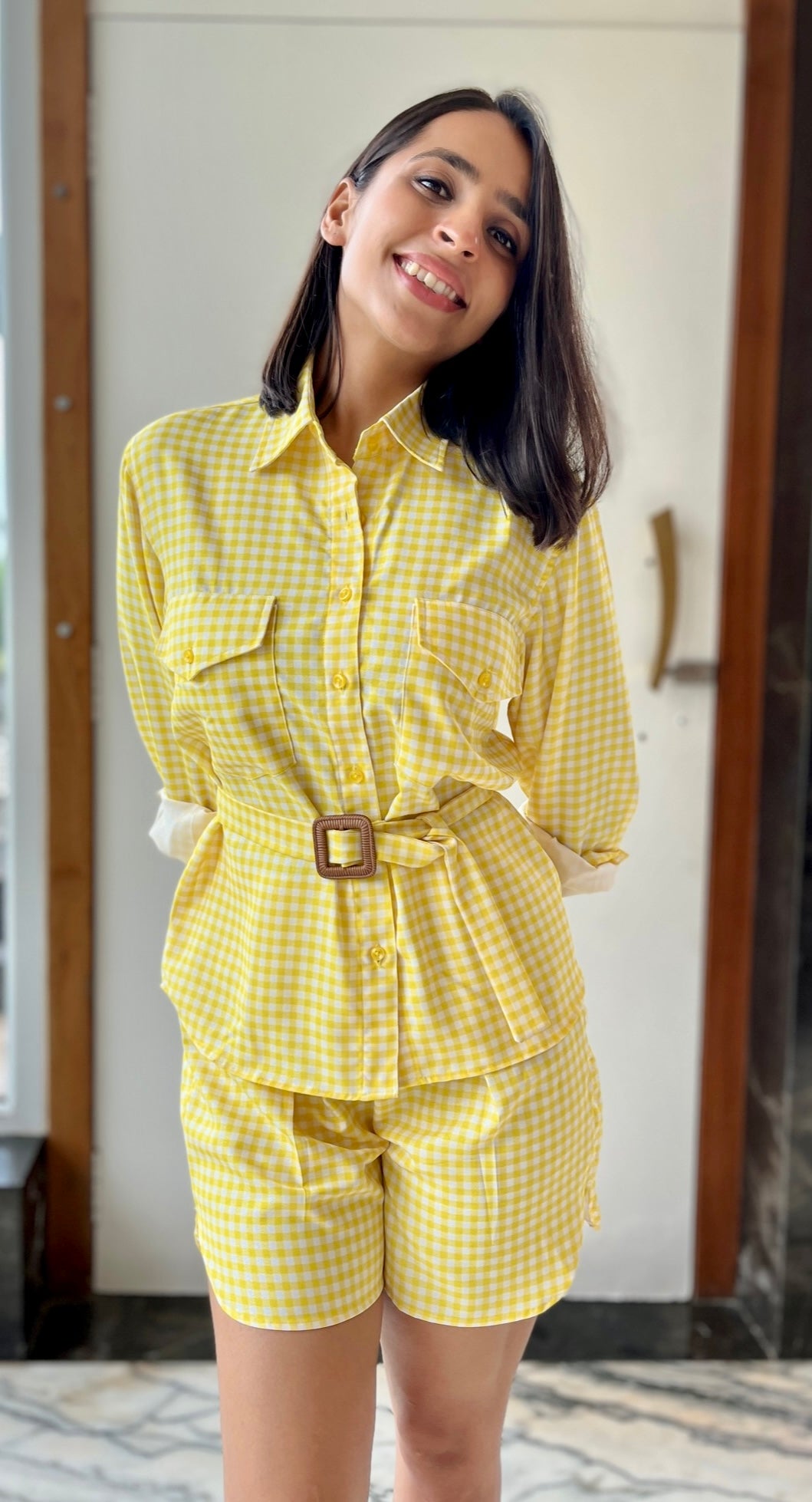 Everyone needs a go-to pair of shorts and this is the one for you. Our yellow gingham apple cut shorts has smooth elasticated waistband. To complete the look, wear it with our matching gingham shirt. (get a free belt when you buy the entire coordset)