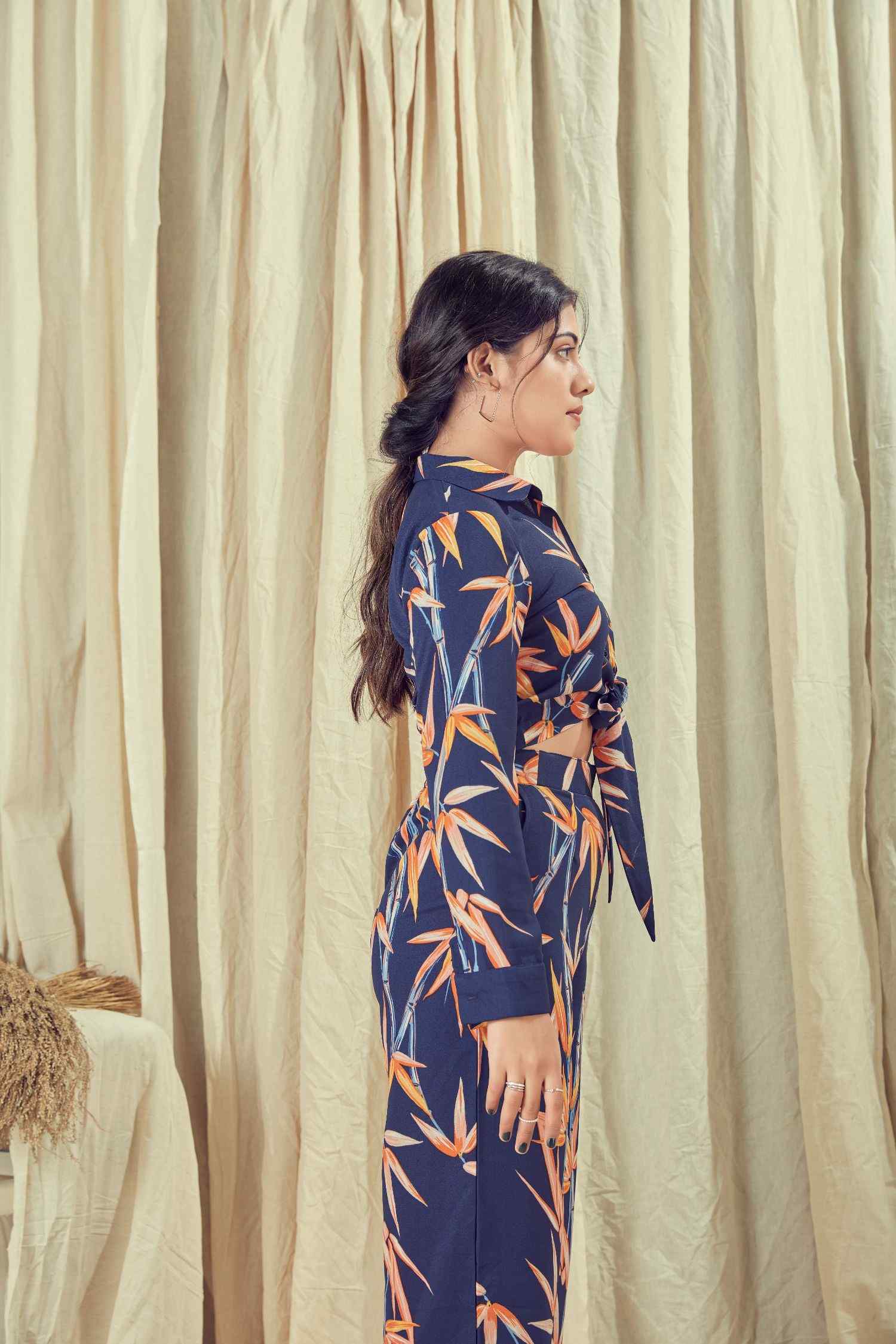 With tie-up detail, cropped length and easy fit, this shirt flatters all those who wear it. You can pair it with our bamboo pants for the complete look.