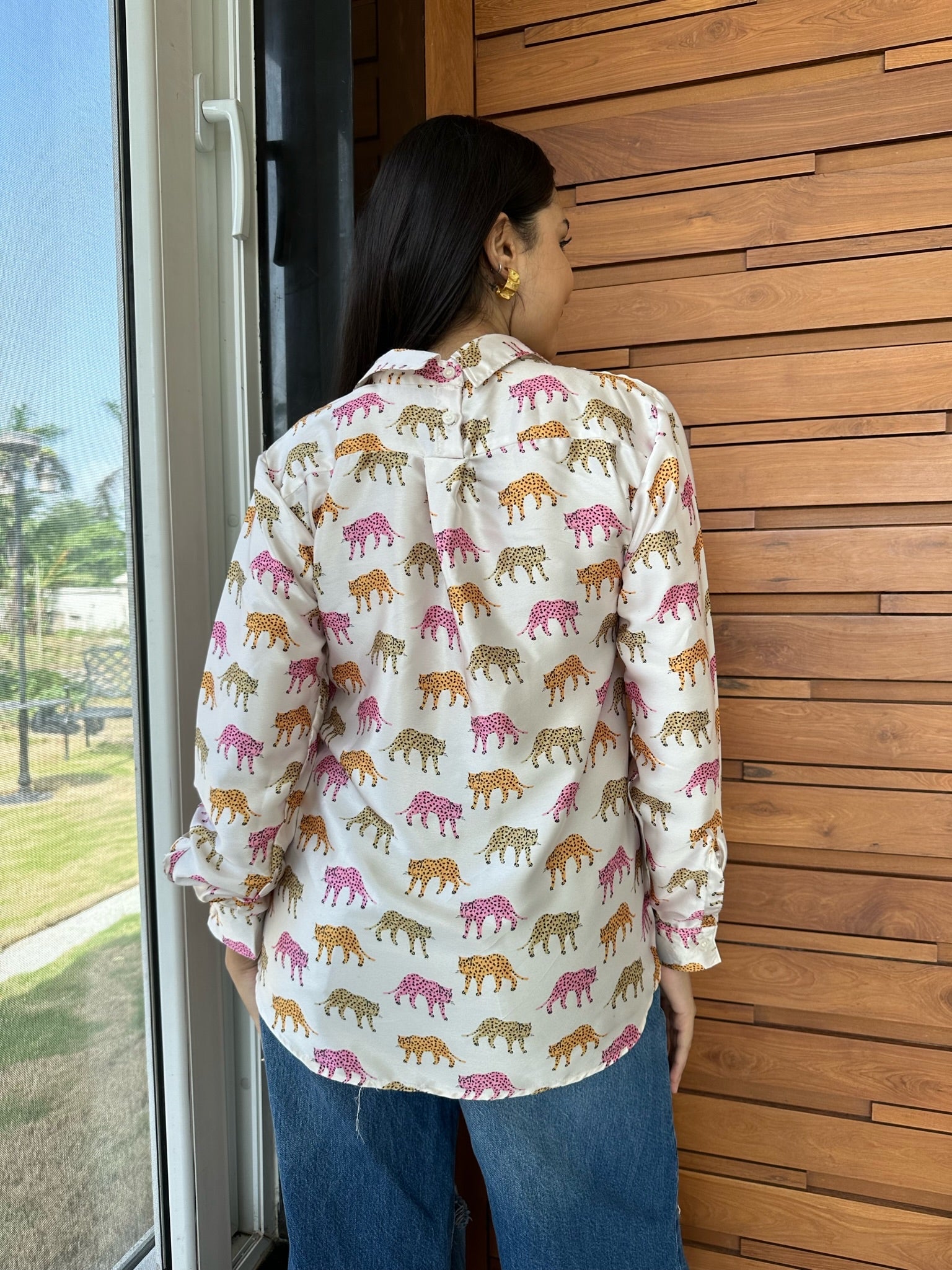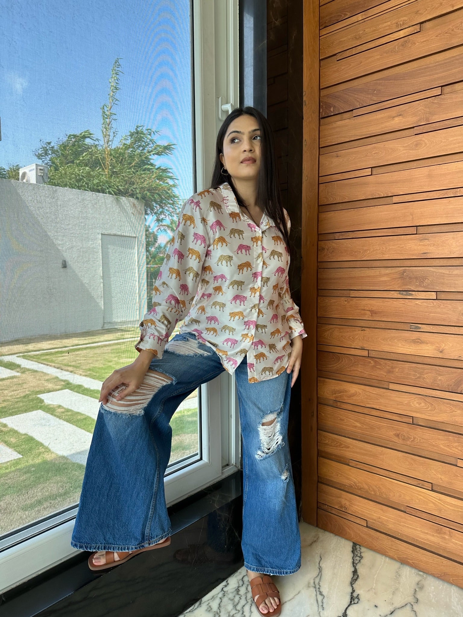 A timeless wardrobe essential- this version of a white shirt has a drop shoulder and a classic point collar silhouette. The back button at the collar is what gives it its charm.