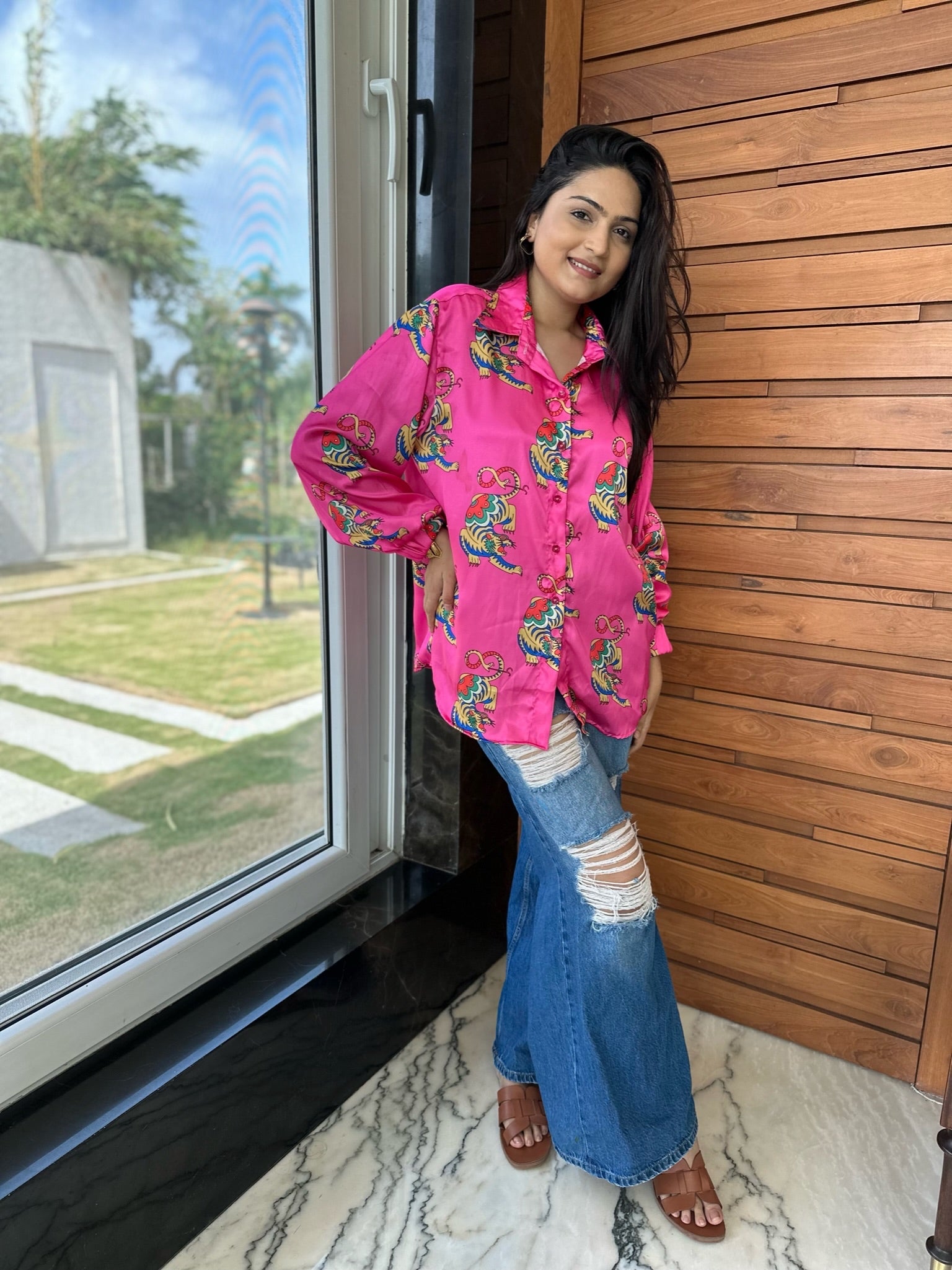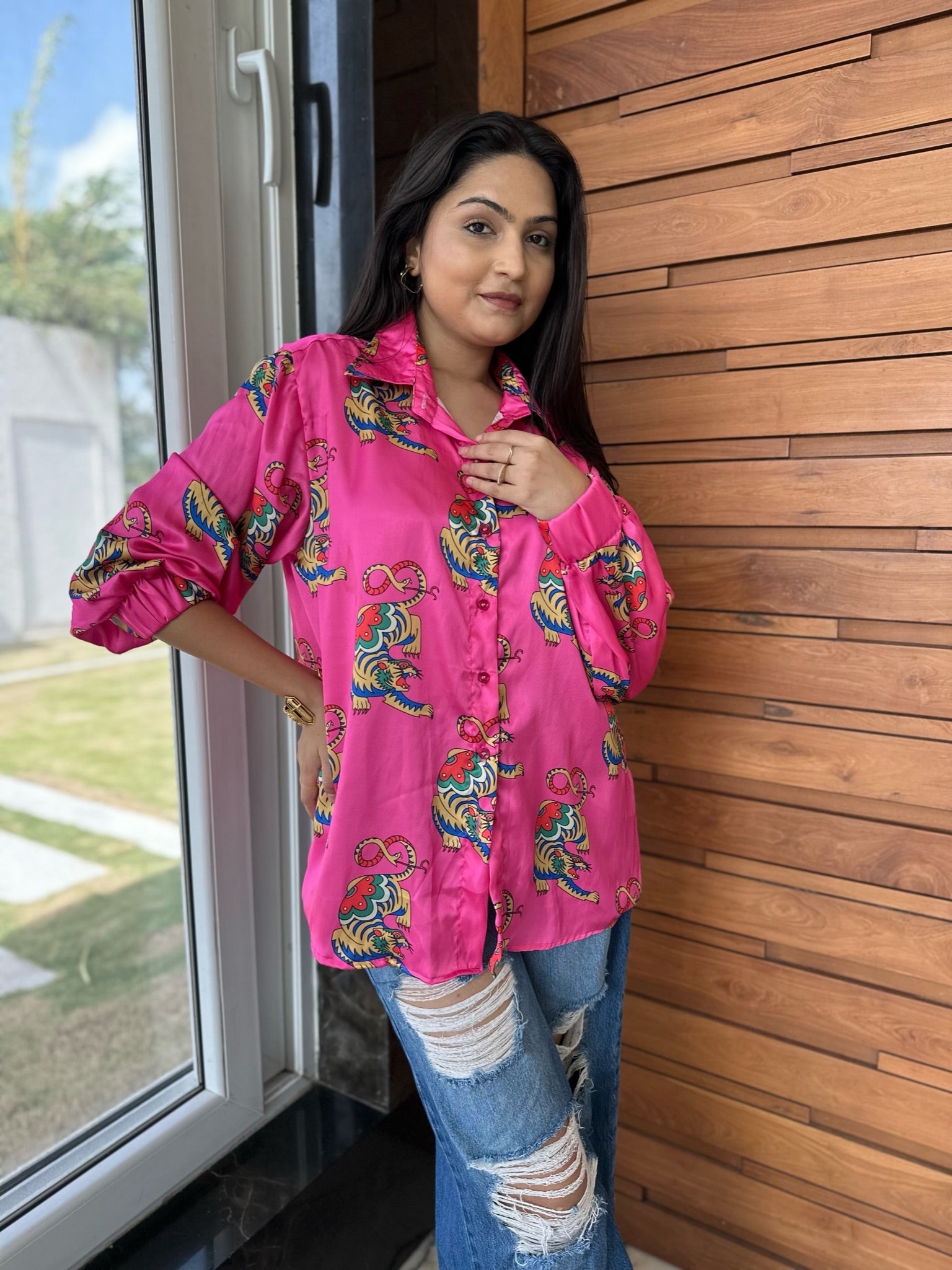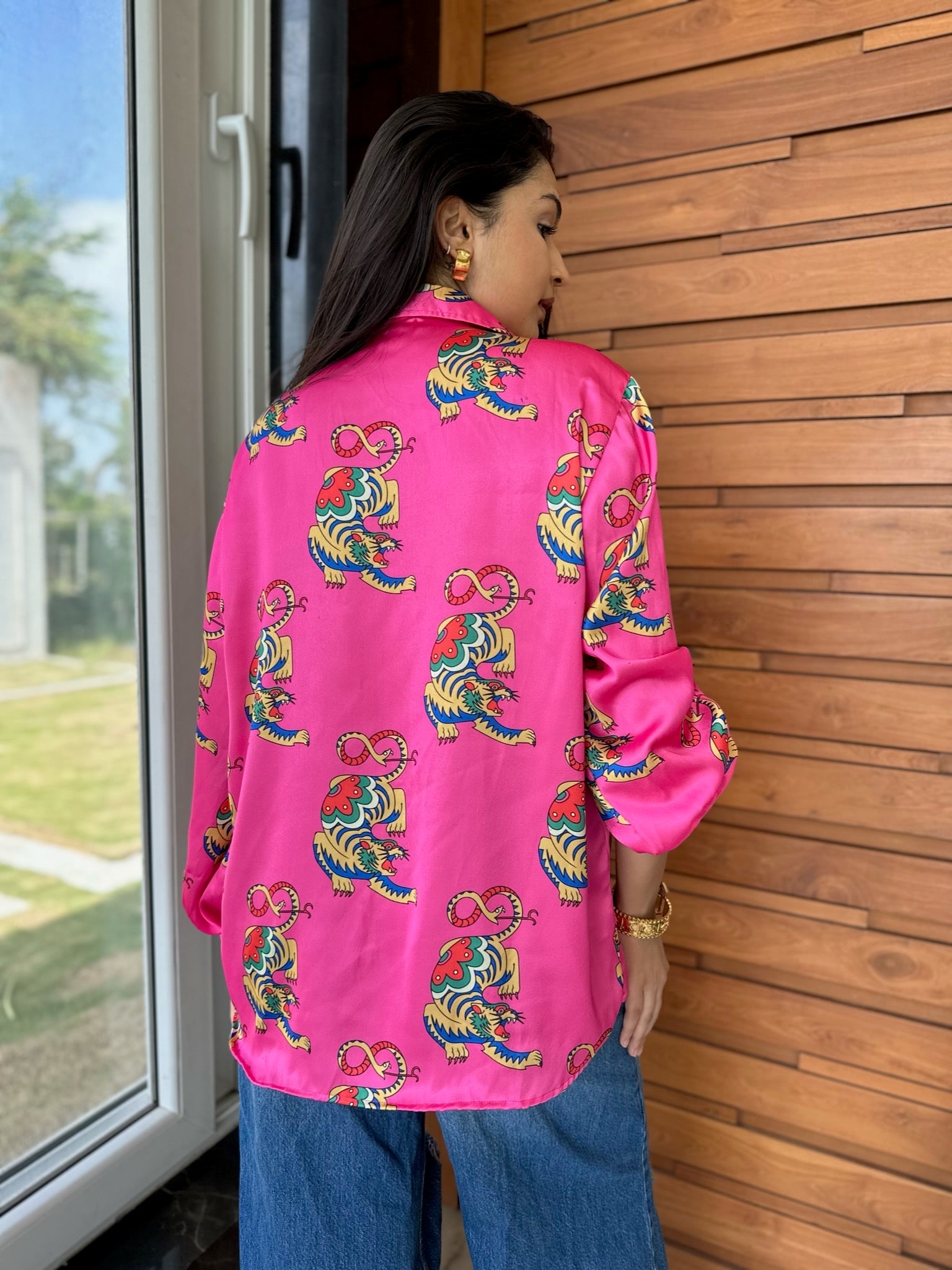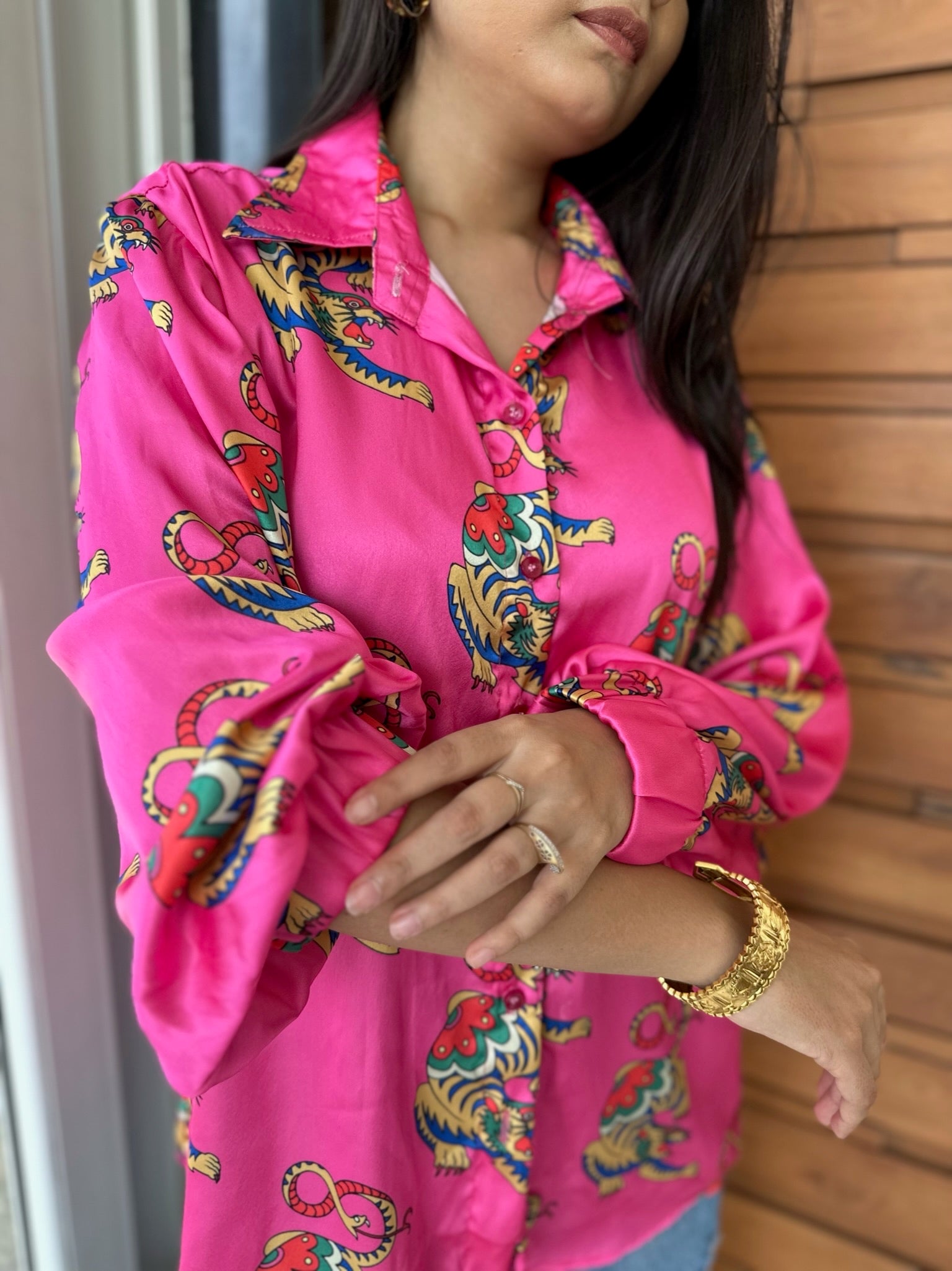 We are obsessed with satin and this shirt is everything we ever wanted. The roomy shirt with elasticised sleeve and dropped shoulders is an absolute delight to wear.